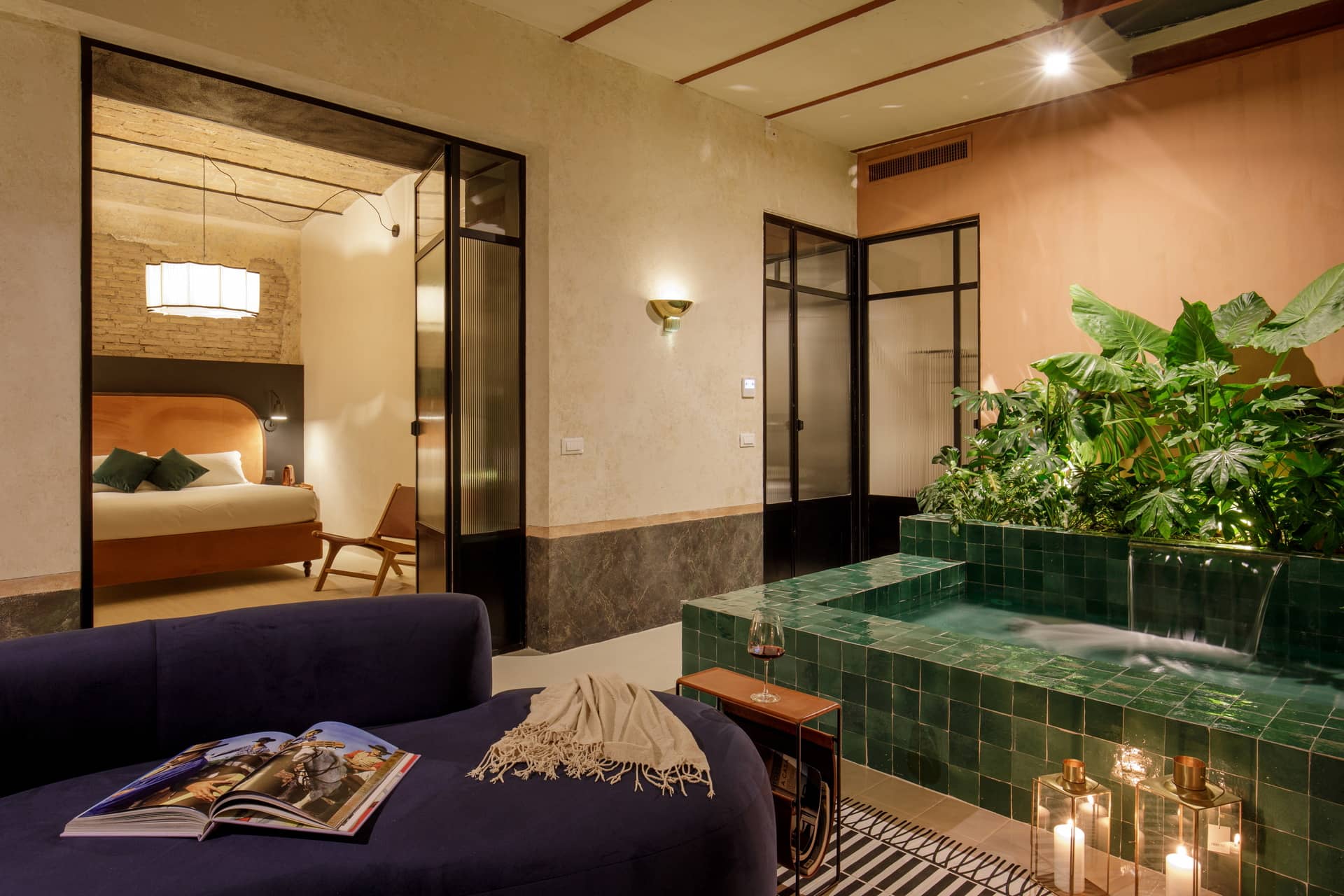 Goditi la nostra fontana, a completa disposizione degli ospiti. Ci siamo lasciati ispirare dai lussureggianti cortili del Marocco, detti Riad, per creare un’atmosfera che non troverai altrove. Un angolo di totale tranquillità e intimità, arricchito da tanto verde, candele e luci soffuse.